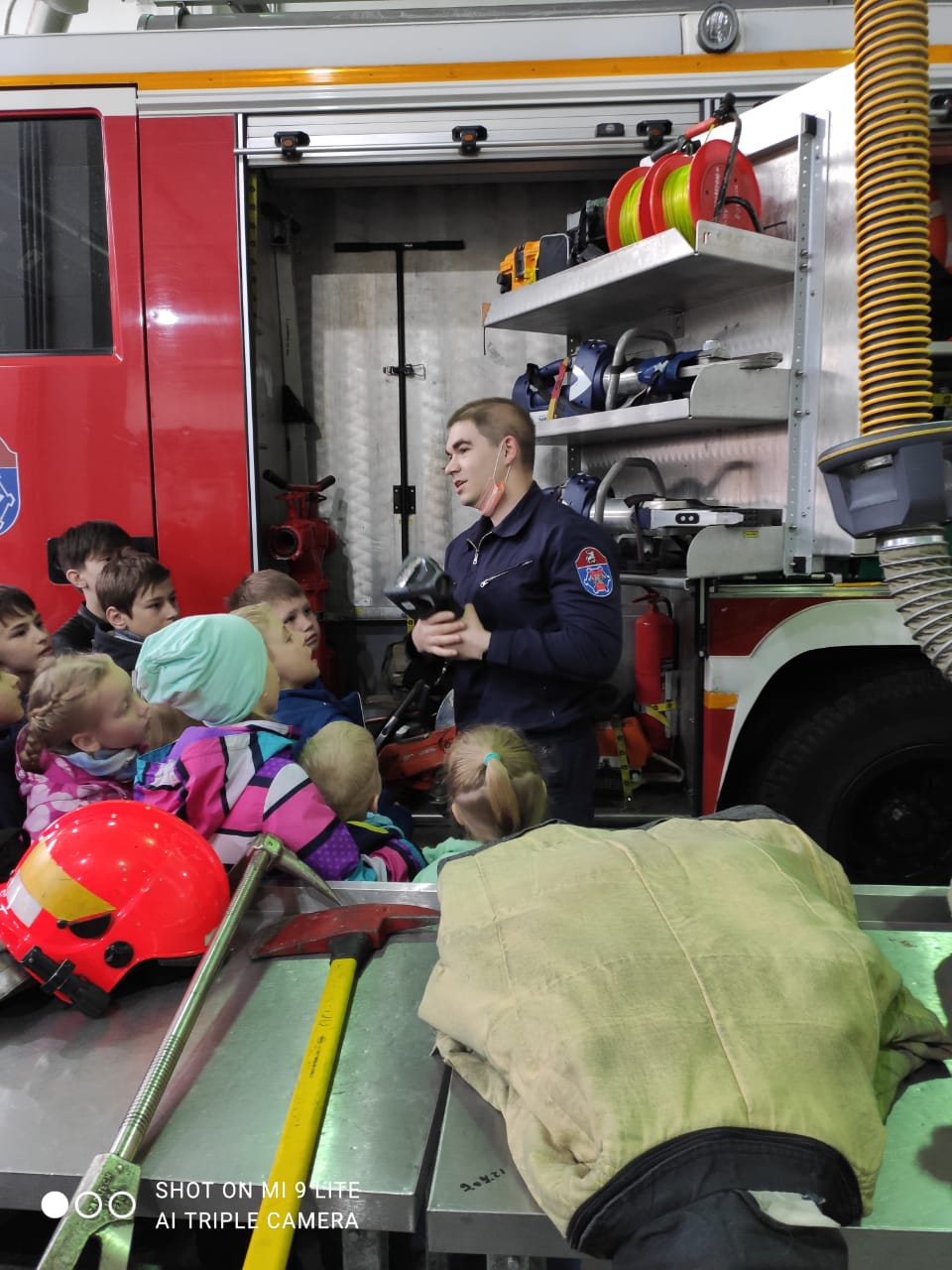 После богослужений учащиеся воскресной школы посетили Пожарно-спасательный отряд №308, распологающийся в поселке. Детям рассказали об особянностях работы спасателей и провели экскурсию по помещениям отряда. Все смогли почувтсвовать себя настоящими спасателями и посидеть за рулем пожарной машине, а так же примерить на себе обмундирования пожарных.
