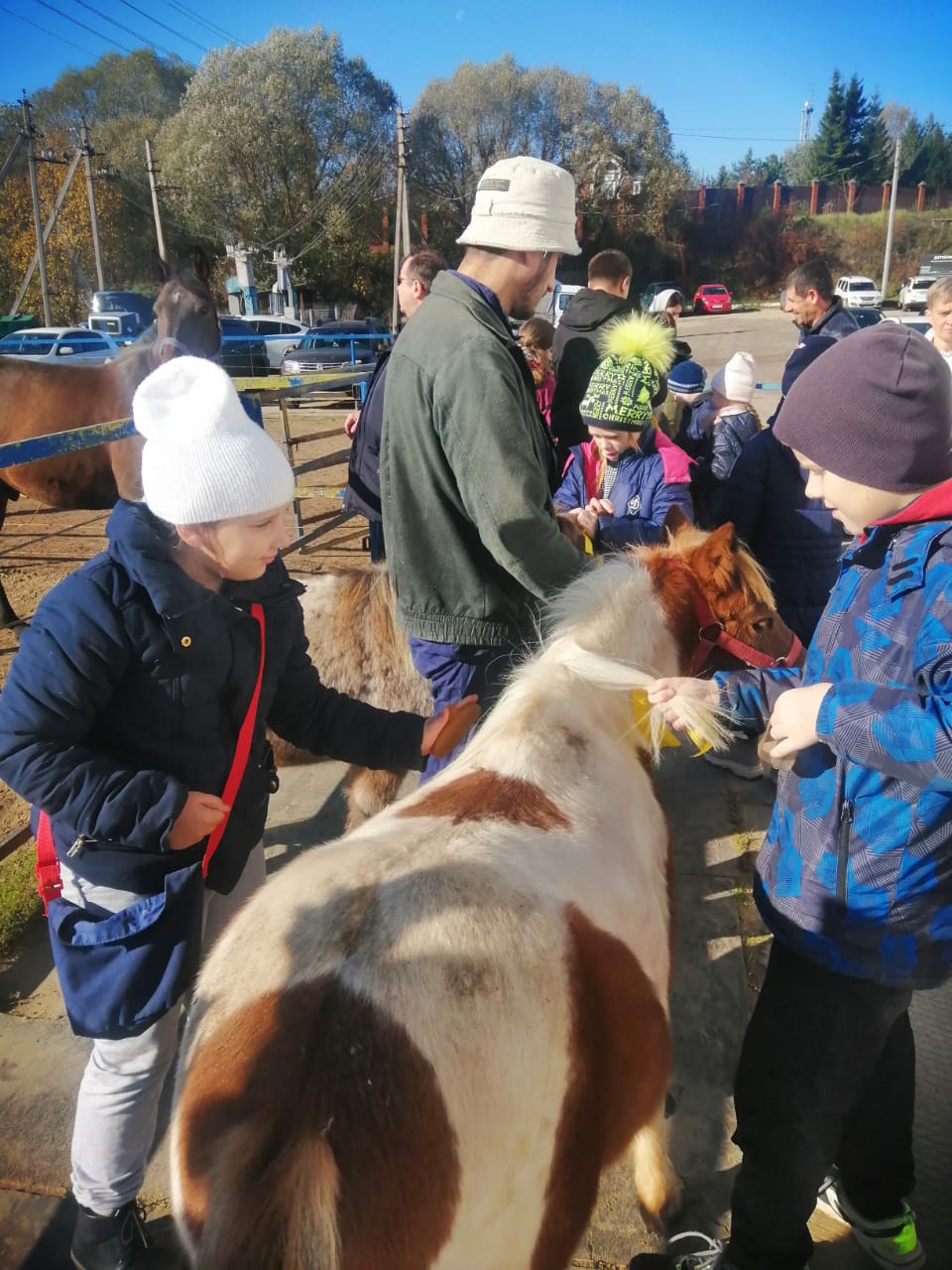 В этот день ребята угостили лошадок привезенными яблоками и морковью, смогли расчесать их шёрстку и заплести их гривы... После познавательной экскурсии детвора с удовольствием поиграла на территории конефермы, а так же познакомились с обитателями местного скотного двора. Привезенными угощениями ребята накормили коров, коз, кроликов, индюшек, местного страуса, гусей, уток и телёнка.