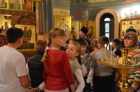 Настоятель храма протоиерей Сергий Дынников рассказал детям о храме, о богослужениях, о иконах.